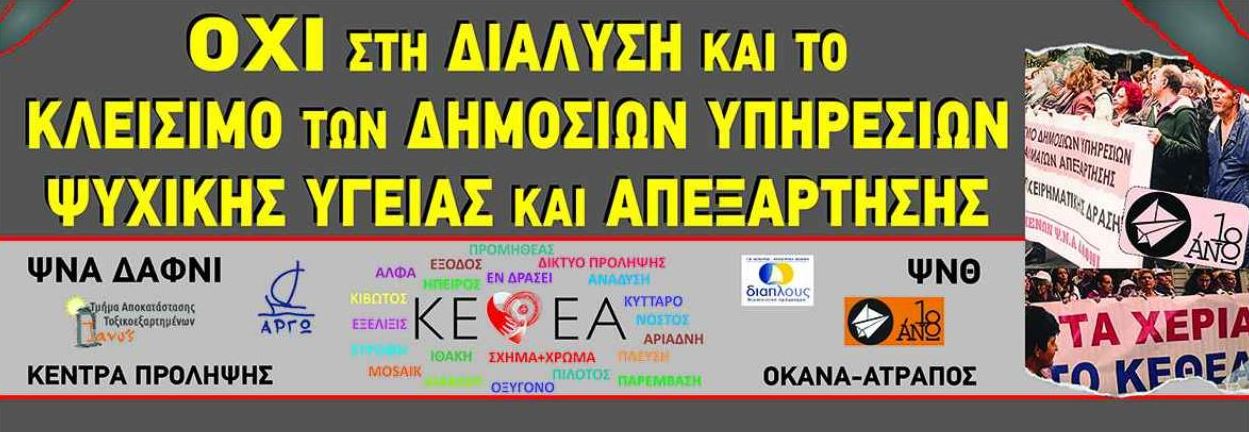- Να σταματήσει η όποια διαδικασία προβλέπει κατάργηση ή συγχώνευση προγραμμάτων, φορέων, υπηρεσιών στο χώρο της Πρόληψης και της Απεξάρτησης και παραχώρησή τους στον ιδιωτικό τομέα.