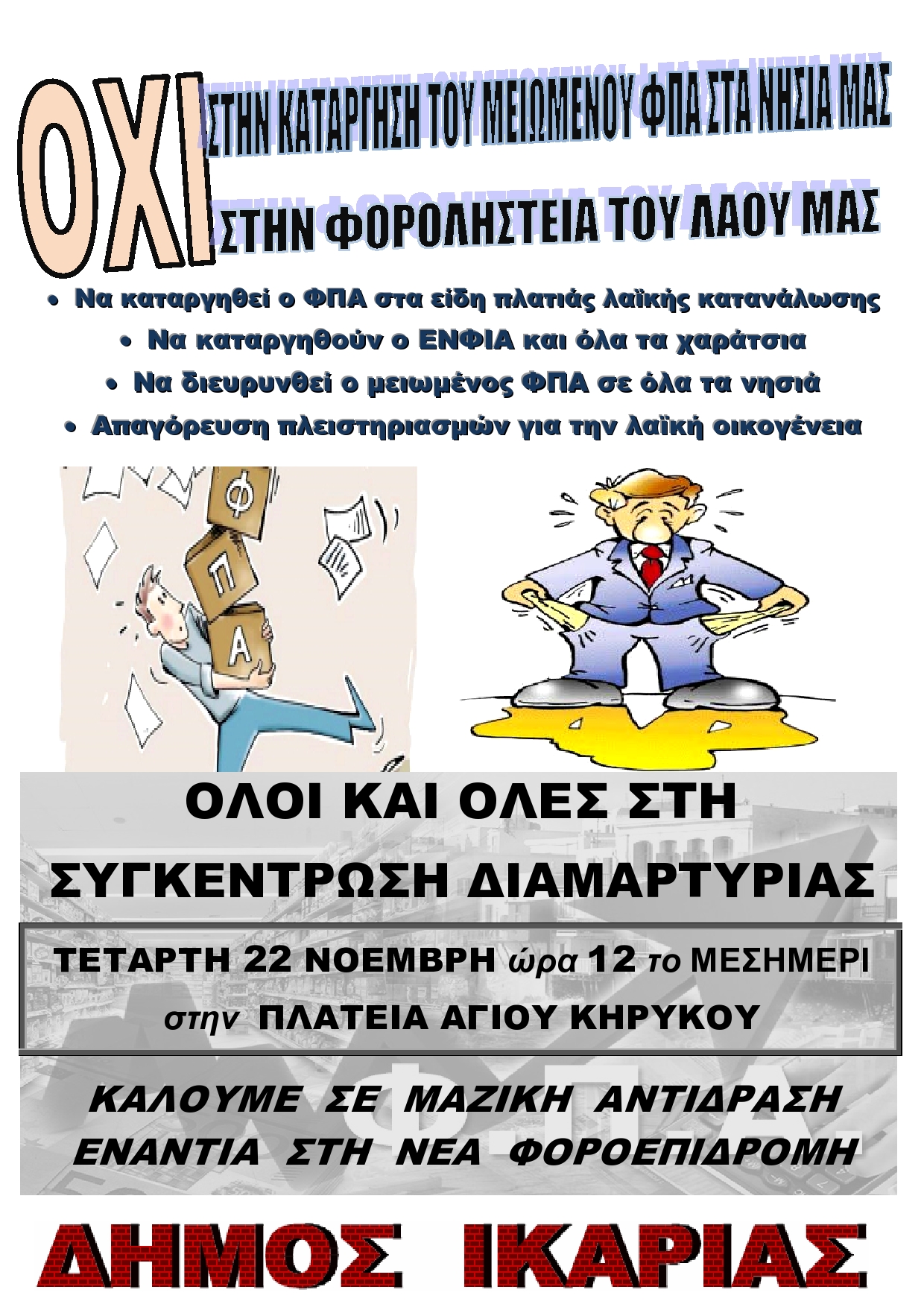 Εκτύπωση Email O Δημος Ικαρίας για την κατάργηση μειωμένου ΦΠΑ Attachments: O Δημος Ικαρίας για την κατάργηση μειωμένου ΦΠΑ Αφίσα Δήμου Ικαρίας για κινητοποίηση 22.11.2017 Facebook Twitter